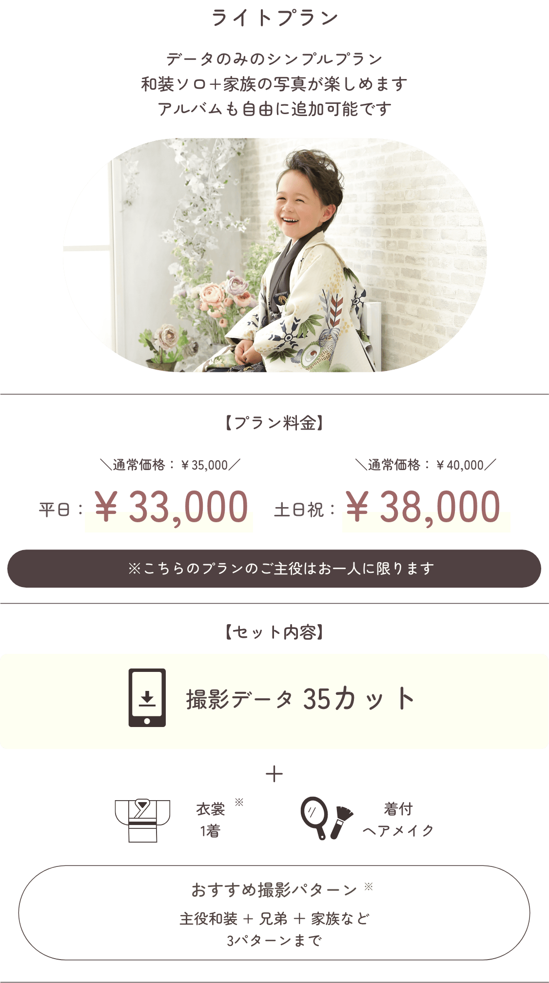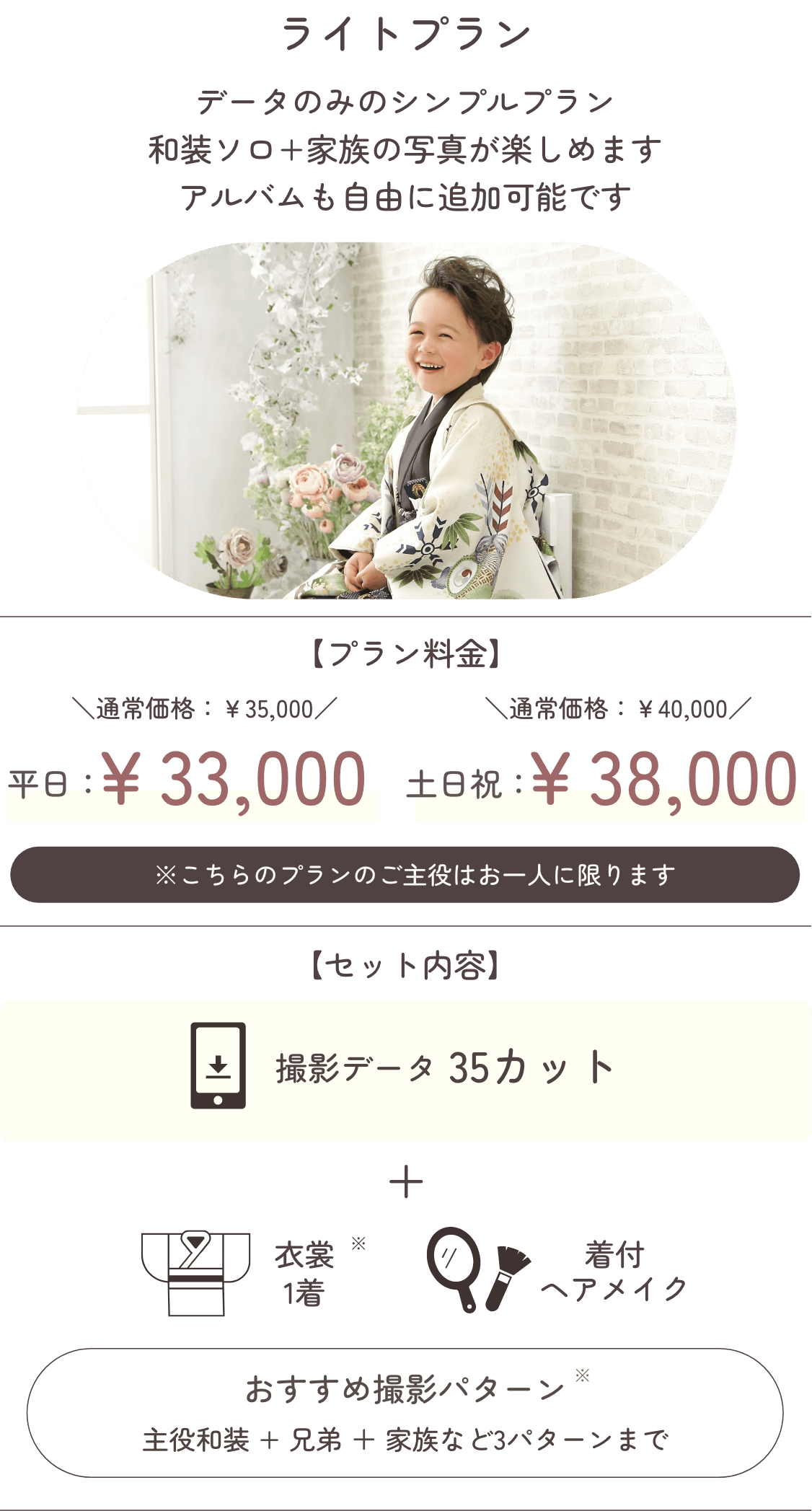 3パターン撮影/衣裳1着(小学生以下のお子様)