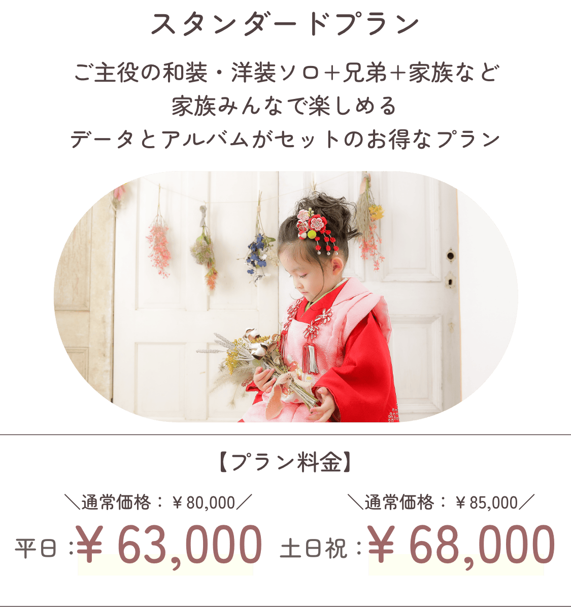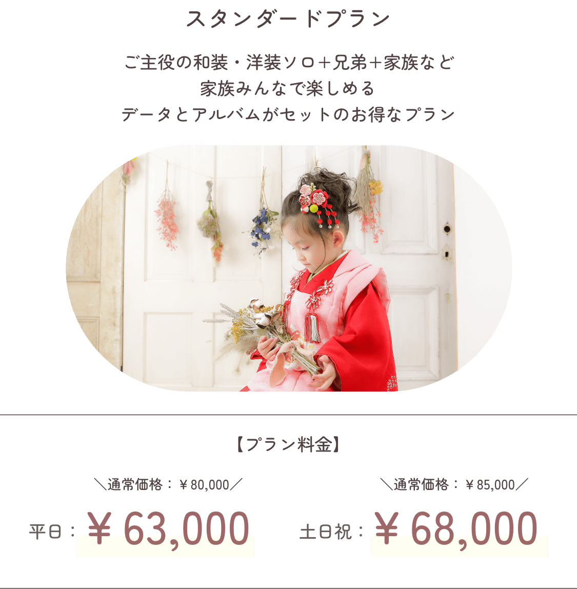 平日 ¥63,000 / 土日祝 ¥68,000