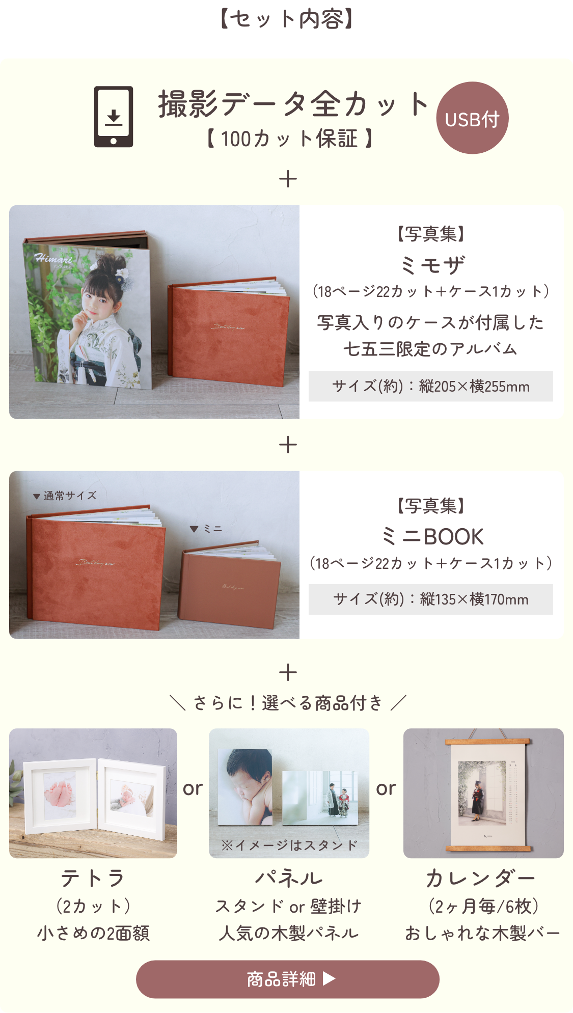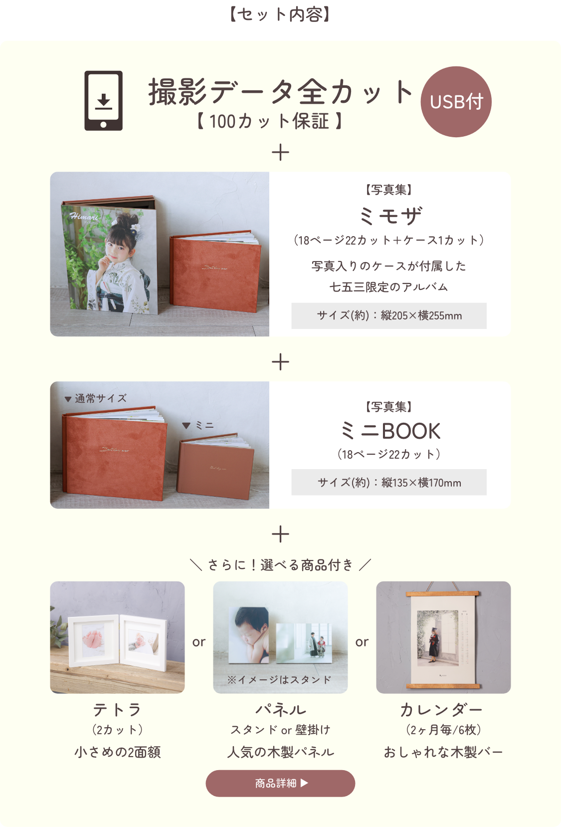 経験豊富なカメラマンがカット数、撮影を行います。小さなお子様の対応にも慣れておりますので安心してお任せください。思い出の品等、撮影小物のお持ち込みも大歓迎♪