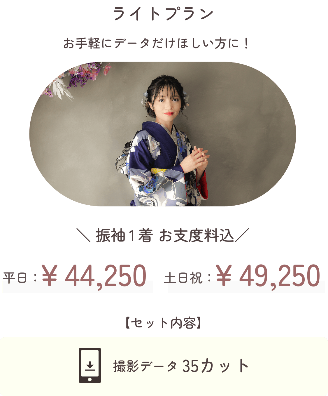 ※ライトプランは撮影時小物コーディネート料¥3,000~頂戴いたします